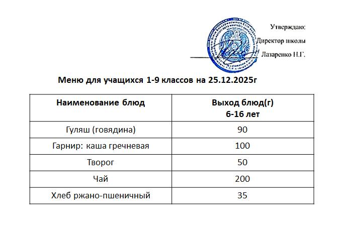 Мәзір (тағамдардың суреті) 2025-2026